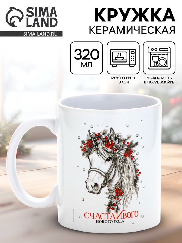 Кружка керамическая новогодняя «Счастливого Нового года», 320 мл