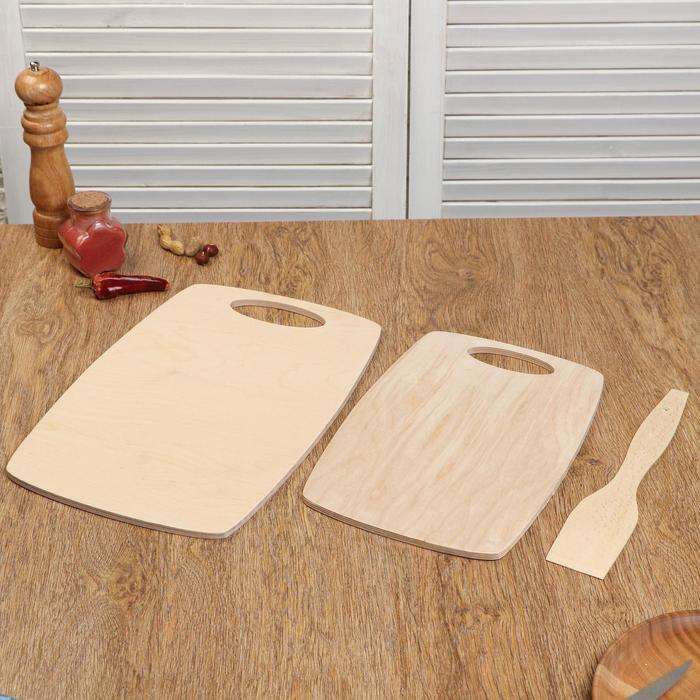 Набор досок разделочных деревянных "Бочонок", (2 шт + лопатка) ручка вырез, 0,8 см