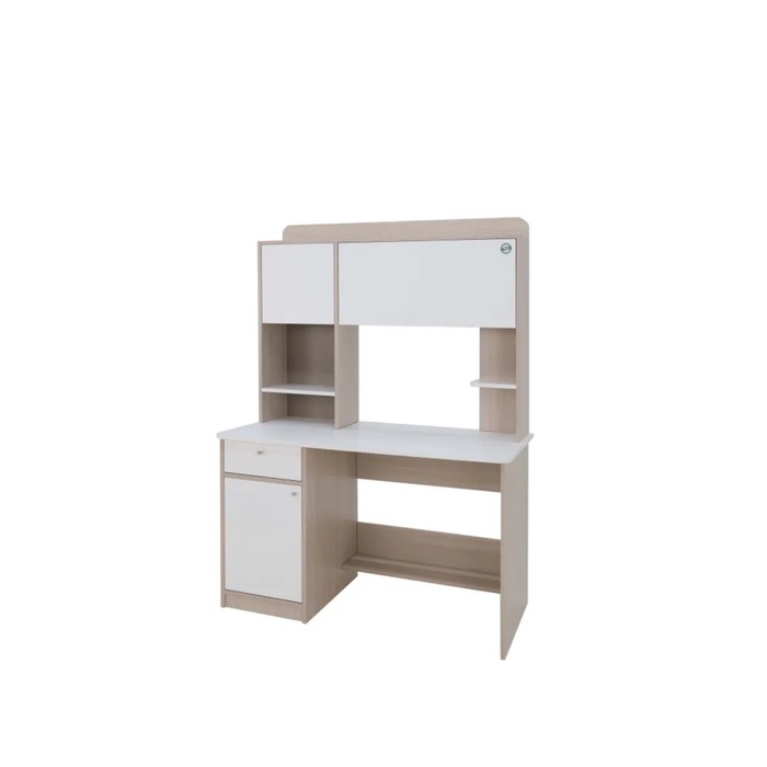 Функциональное решение для организации рабочего пространства дома или в офисе. Модель сочетает рабочую поверхность, встроенную тумбу и надстройку с системами хранения, обеспечивая удобство, порядок и эргономичность.